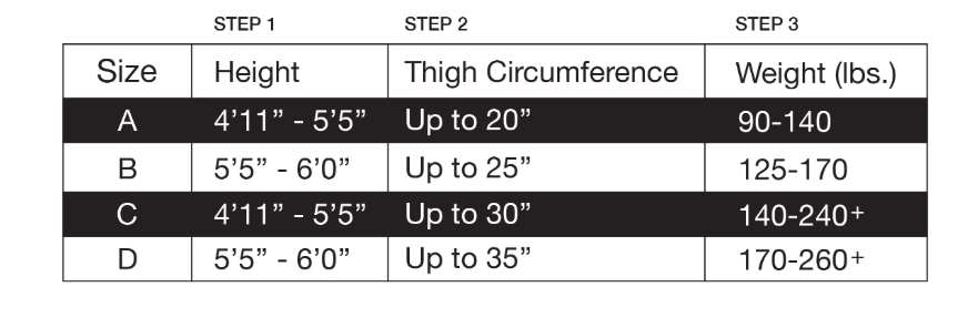 Sizing: Measure by height first and thigh circumference second. Weight can be arbitrary when sizing for a thigh-high. We all carry our weight differently; be it in the tush, tummy or thighs – which have no bearing on finding the perfect Kix’ies® fit! Time to kick those binding tights and outdated hosiery to the curb!