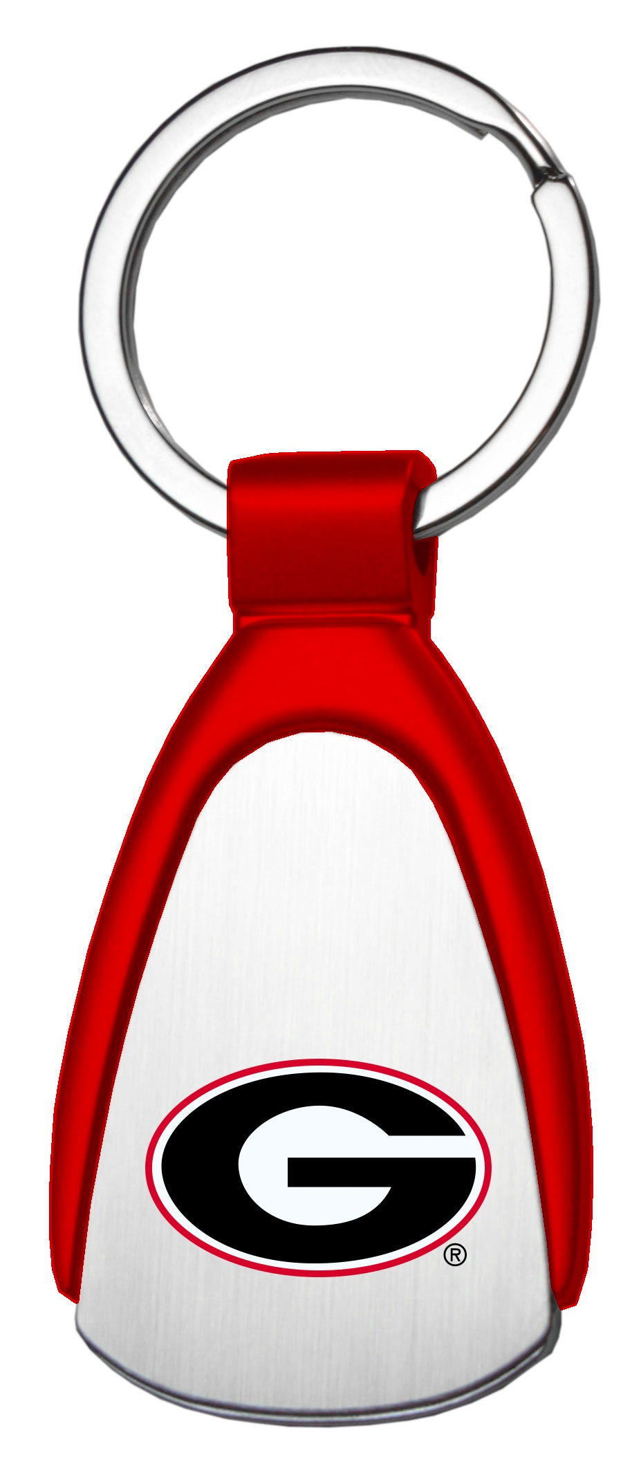 University of Georgia teardrop metal keychain. Comes in either red or black with either the power G or new bulldog head.