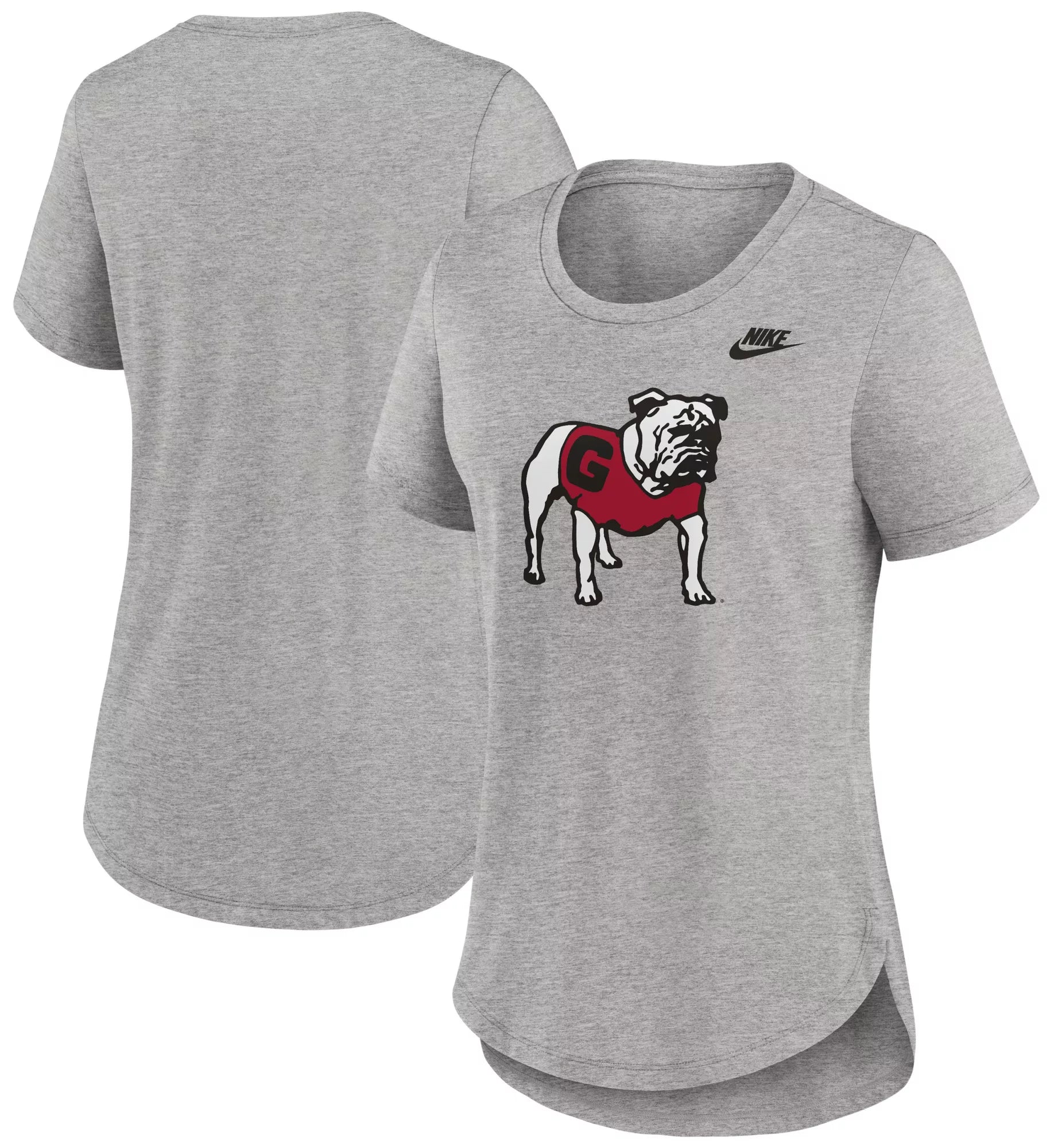 UGA Nike Ladies Grey Heather Throwback Logo T-Shirt
