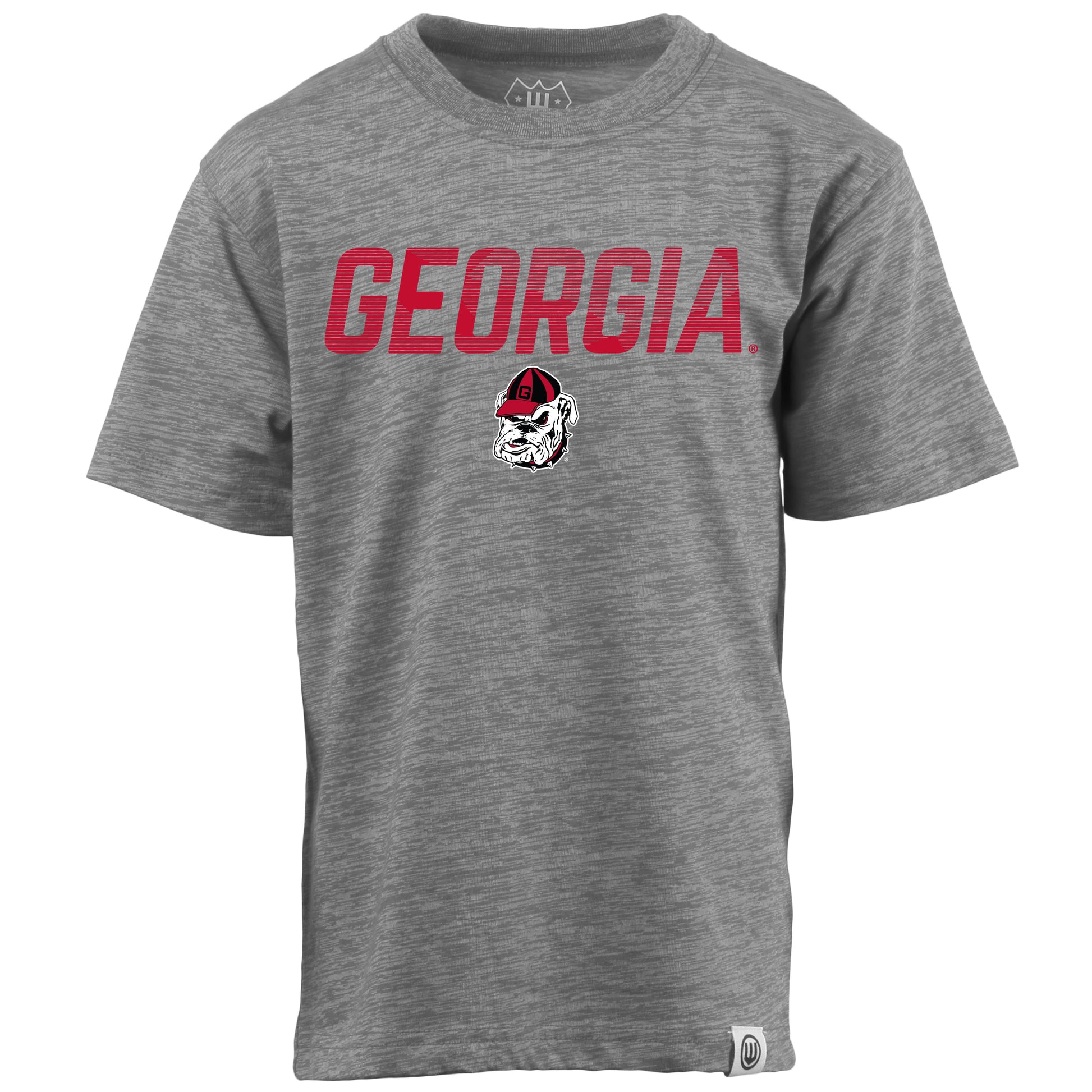 University of Georgia tee with old bulldog head and gradient Georgia word block.